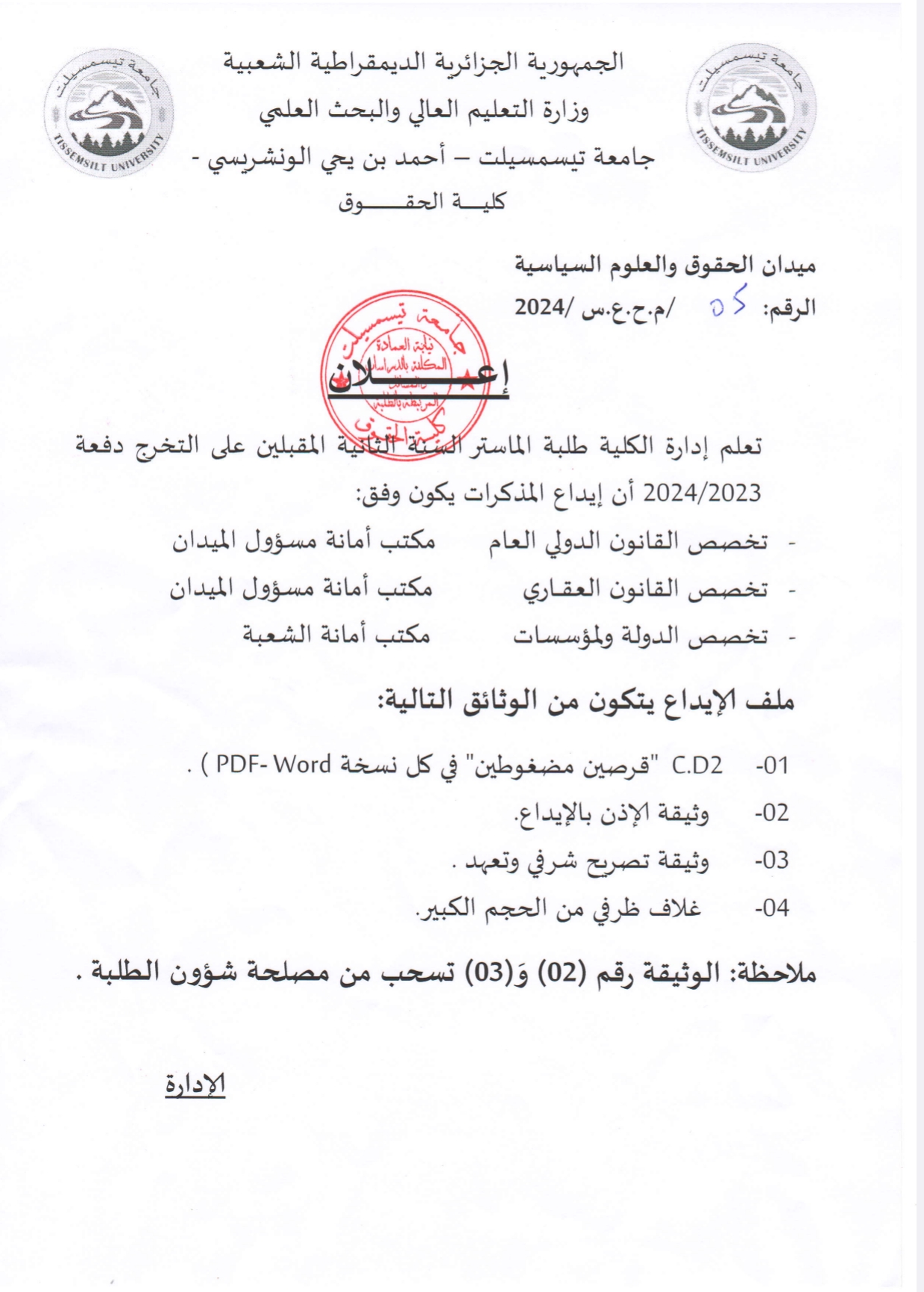 إعلان خاص بملف التخرج @إعلانات للطلبةإعلان مهم بواسطة admin faculté droit في مايو 22, 2024 535 شارك رابط تحميل التصريح الشرفي من هنا 535 شارك FacebookTwitterGoogle+ReddItWhatsAppPinterestالبريد الإلكتروني