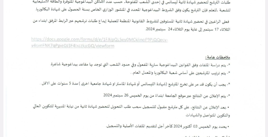 #اعلان عن فتح بوابة الترشح لتحضير شهادة ثانية ليسانس السنة الجامعية 2025/2024