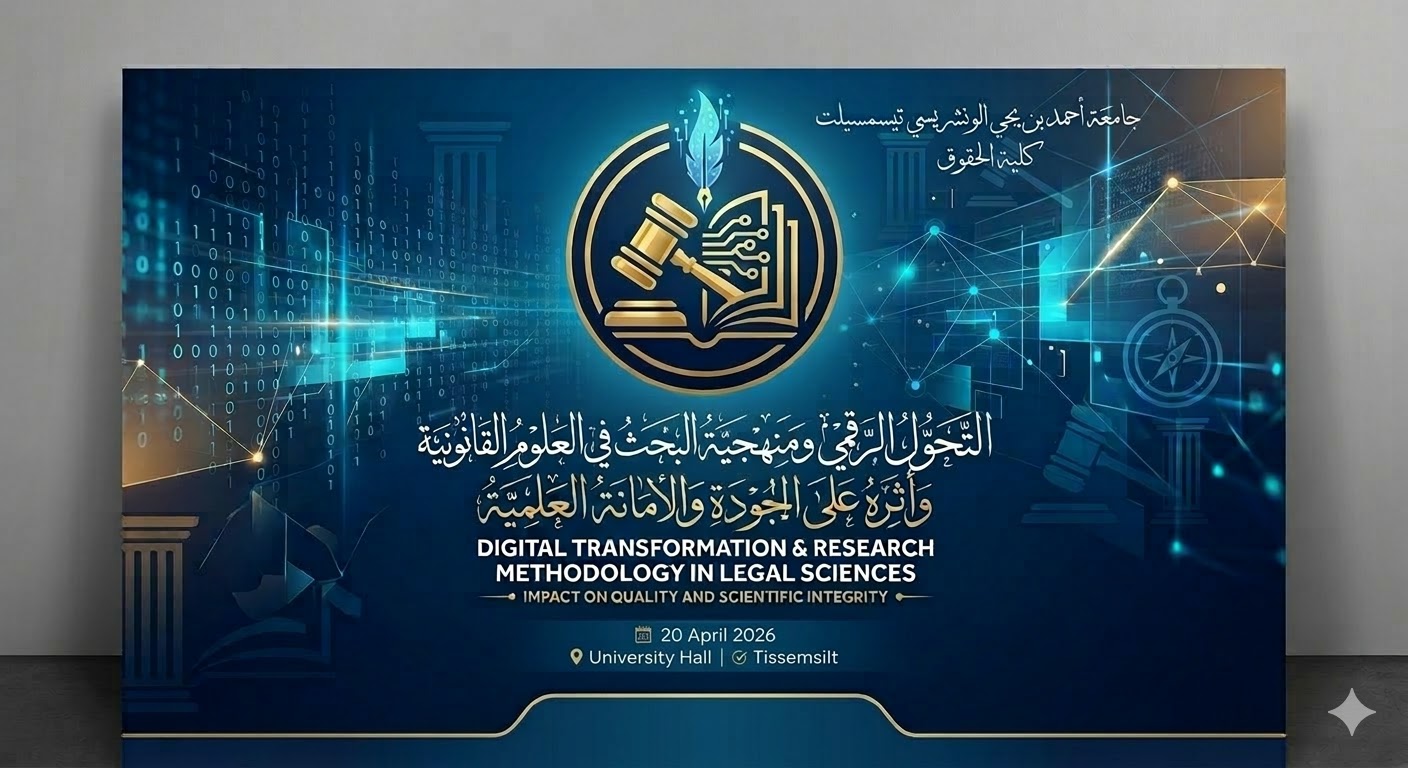 اعلان عن ملتقى وطني حضوري و عن بعد حول التحول الرقمي و منهجية البحث في العلوم القانونية و أثره على الجودة و الأمانة العلمية @إعلانات لطلبة الدكتوراه@إعلانات للأساتذة بواسطة admin faculté droit آخر تحديث مارس 19, 2026 8 شارك ملتقى وطني حضوري و عن بعد حول التحول الرقمي و منهجية البحث في العلوم القانونية و أثره على الجودة و الأمانة العلمية رابط المطوية للتحمبل 8 شارك FacebookTwitterGoogle+ReddItWhatsAppPinterestالبريد الإلكتروني